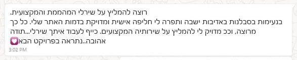 לראות אותך מצליחה ליצור עסק שמותאם לך, למשפחה שלך ולערכים שלך. אני מאמינה שעם הכלים הנכונים, את יכולה להפוך כל רעיון, אפילו הכי מופשט, לנוכחות דיגיטלית חזקה ומעוררת השראה.